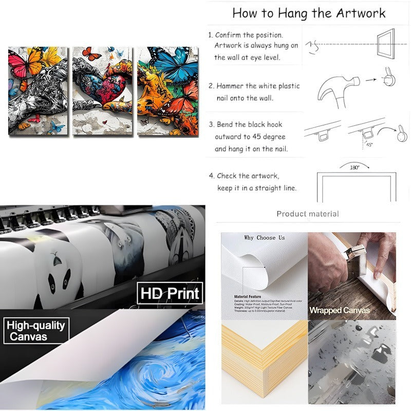 Framed 3pcs Graffiti Holding Hands Love Heart Canvas Wall Art Fashion Love Poster Painting Prints For Home Dining Room Living Room Wall Decor Artwork--Selling On Temu Is Prohibited