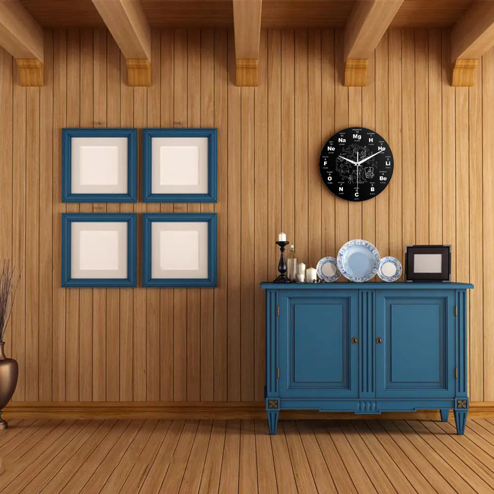Transform your space with the stunning Periodic Table of Elements wall clock. This unique timepiece not only serves the practical purpose of keeping time but also doubles as a striking decorative element. Perfect for various settings including your study, office, bedroom, living room, or even the kitchen, it brings a touch of scientific elegance to any environment.