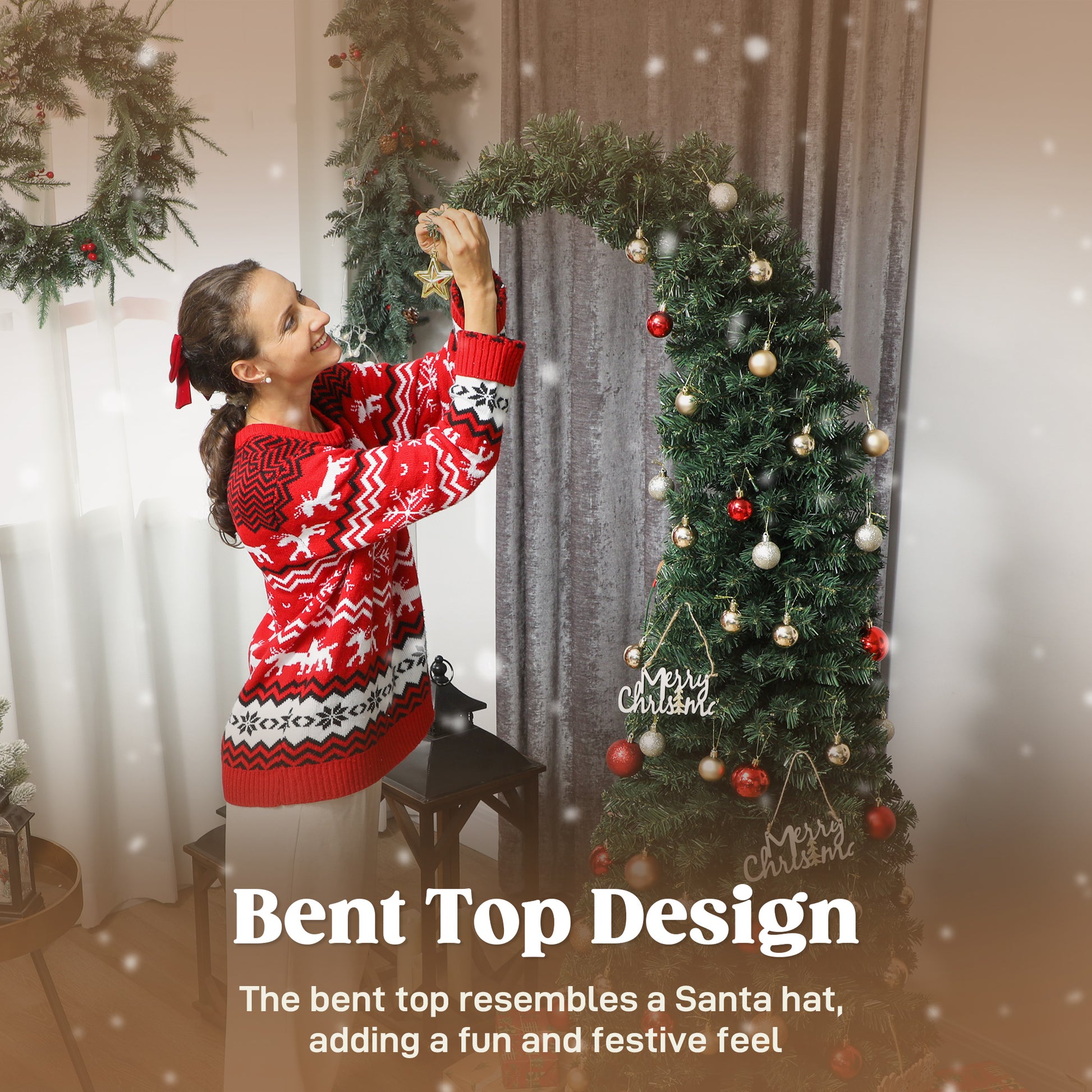 Struggling to find a Christmas tree that fits your small apartment yet still makes a statement? Don't let limited space dim your holiday spirit. This HOMCOM artificial Christmas tree offers a solution with its slender design and playful bent top. Instantly create a cozy or lively atmosphere with its prelit warm white lights, transforming any tight corner into a festive focal point and making this your most memorable xmas tree yet. Features: - Bent top mimics a Santa hat, enhancing whimsical charm and festive cheer - Includes 200 warm white LEDs with 8 modes for a custom festive ambiance - Crafted with 493 tips for a naturally full appearance - Slim design is great for small spaces and corners - Sectioned design allows for easy setup, with branches requiring manual shaping - Flame-retardant plastic and a strong metal base ensure safety and stability Specification: - Color: Green - Light Color: Warm White - Material: Plastic, Metal - Tree Type: Slim High Mountain Fir - Overall Dimensions: 23.6" Dia. x 72" H - Tree Height: 6 ft - Base Size: 15.7" Dia. - Tips Count: 493 - LED Light Count: 200 - Suggest Assembly Time: 30 minutes - Input: AC 120V, 60Hz, 0.2A - Output: DC 30V, 0.12A, 3.6W - Item Label: 83C-083V81GN NOTE: Only for indoor use, not for outdoor Package Includes: - 1 x Christmas Tree - 1 x Manual Struggling to find a Christmas tree that fits your small apartment yet still makes a statement? Features: - Bent top mimics a Santa hat, enhancing whimsical charm and festive cheer - Includes 300 warm white LEDs with 8 modes for a custom festive ambiance - Crafted with 777 tips for a naturally full appearance - Slim design is great for small spaces and corners - Sectioned design allows for easy setup, with branches requiring manual shaping - Flame-retardant plastic and a strong metal base ensure safety and stability Specification: - Color: Green - Light Color: Warm White - Material: Plastic, Metal - Tree Type: Slim High Mountain Fir - Overall Dimensions: 29.5" Dia. x 84" H - Tree Height: 7 ft - Base Size: 19.7" Dia. - Tips Count: 777 - LED Light Count: 300 - Suggest Assembly Time: 30 minutes - Input: AC 120V, 60Hz, 0.2A - Output: DC 30V, 0.2A, 6W - Item Label: 83C-083V82GN NOTE: Only for indoor use, not for outdoor Package Includes: - 1 x Christmas Tree - 1 x Manual Struggling to find a Christmas tree that fits your small apartment yet still makes a statement? Features: - Bent top mimics a Santa hat, enhancing whimsical charm and festive cheer - Includes 100 warm white LEDs with 8 modes for a custom festive ambiance - Crafted with 246 tips for a naturally full appearance - Slim design is great for small spaces and corners - Sectioned design allows for easy setup, with branches requiring manual shaping - Flame-retardant plastic and a strong metal base ensure safety and stability Specification: - Color: Green - Light Color: Warm White - Material: Plastic, Metal - Tree Type: Slim High Mountain Fir - Overall Dimensions: 19.7" Dia. x 59.8" H - Tree Height: 5 ft - Base Size: 13.8" Dia. - Tips Count: 246 - LED Light Count: 100 - Suggest Assembly Time: 25 minutes - Input: AC 120V, 60Hz, 0.2A - Output: DC 30V, 0.12A, 3.6W - Item Label: 83C-083V80GN NOTE: Only for indoor use, not for outdoor Package Includes: - 1 x Christmas Tree - 1 x Manual.