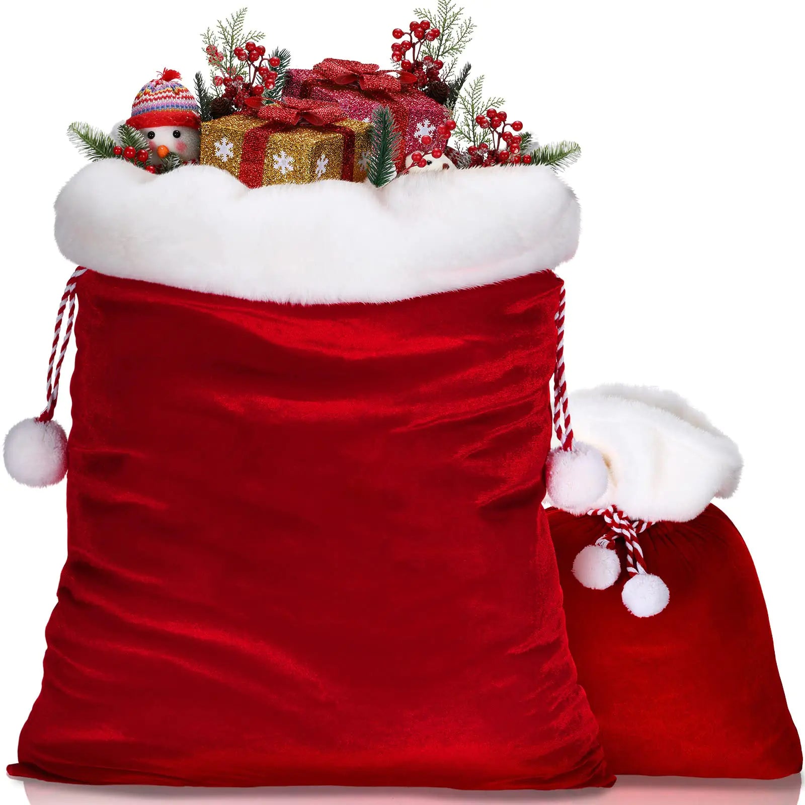 Shappy 2 Pieces Christmas Velvet Santa Bags with Drawstring in 2 Size Large Christmas Santa Gift Bags Santa Gift Sack for Xmas Playing Santa Present Toy(Red)